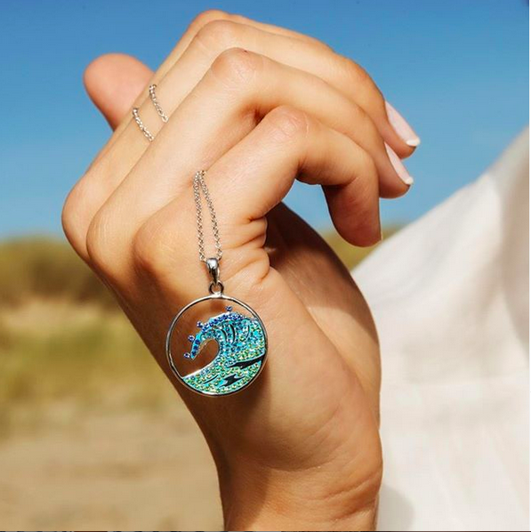 How much do we love this abalone sea turtle pendant? It’s that perfect subtle summer nod. The pearlescent shell conjures up images of oyster shells. The white Swarovski crystals keep things fancy and footloose. We can just imagine wearing this necklace while eating a seafood feast on the boardwalk.