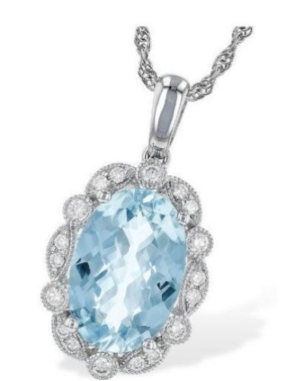 When putting aquamarine into a setting, you should definitely consider additional stones. Aquamarine looks especially good with diamonds as the latter’s clear color really allows the gem to shine. This Allison Kaufman necklace is a great example of the delicate beauty created when diamonds and aquamarines combine.