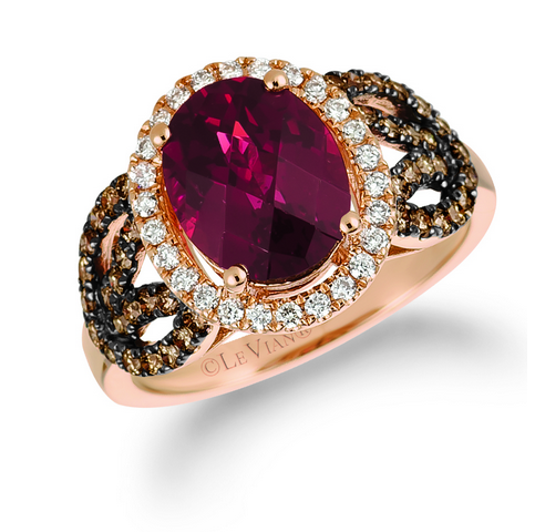 We also love this Raspberry Rhodolite ring surrounded by chocolate diamonds. It’s truly red-carpet ready!
