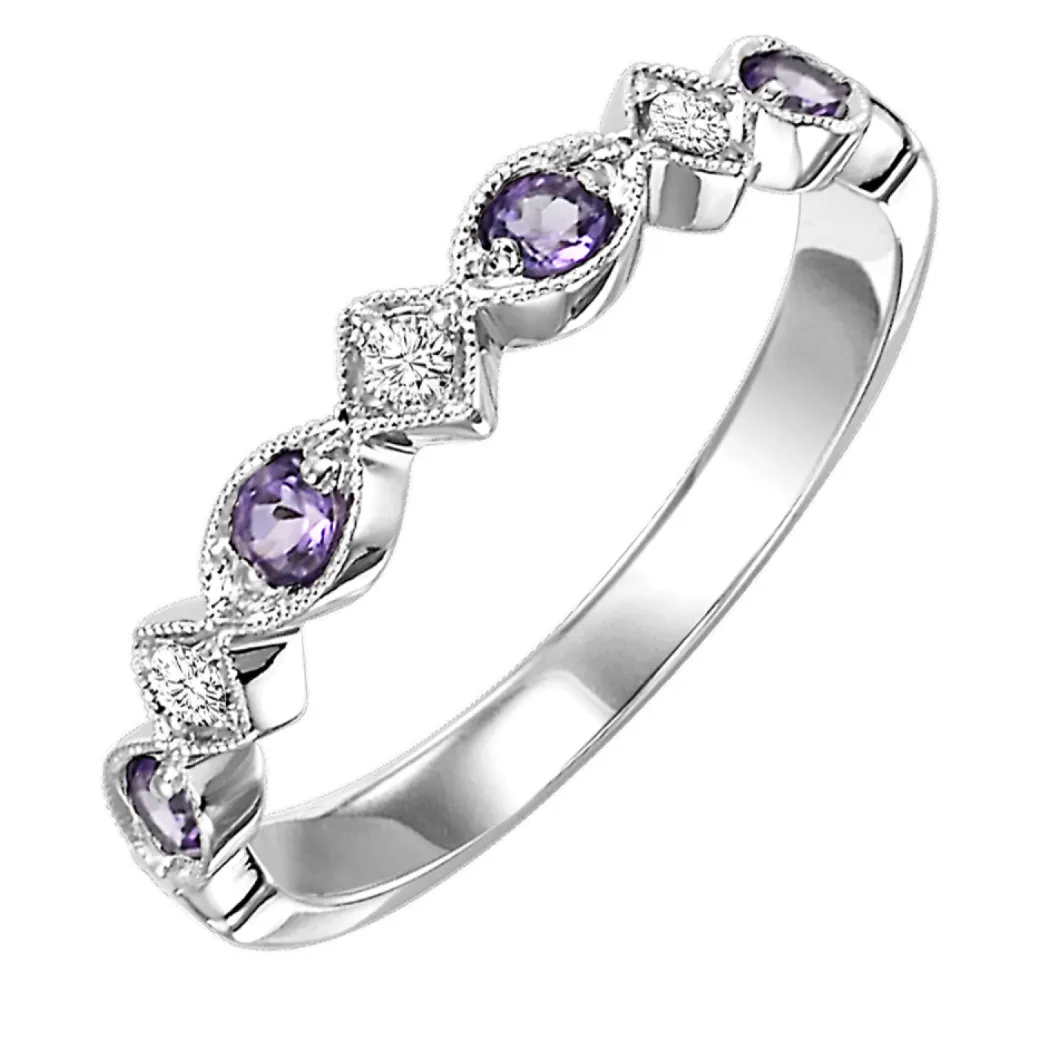 10 Karat White Gold Diamond and Amethyst Stackable Fashion Ring