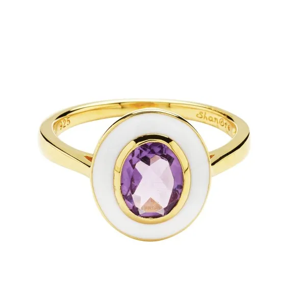 We love to see the variety of ways amethyst can be incorporated into meaningful jewelry. ShanOre has done an excellent job using amethyst with white enamel to create an elegant yet casual look. Pairing these earrings with this ring is a great way to bring purple into your outfit without it becoming overwhelming.