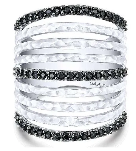 Personally, we’re loving the look of black spinel. Gabriel and Co has a beautiful line featuring black spinel out right now. This sterling silver ring makes such a major statement
