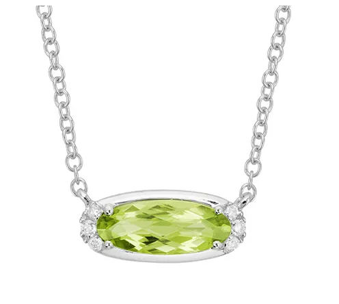 It’s safe to say we think this 14k white gold peridot necklace is stellar. We love the beautiful oval cut with the bright peridot surrounded by diamonds.