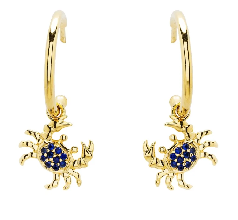 Sterling Silver Blue and White Lab Sapphire Crab Dangle Hoop Earrings