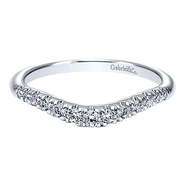 Pave (adjective): Pave jewelry is a piece that has many smaller diamonds set close together. The diamonds appear to be touching, so they create a seemingly-continuous surface of diamonds. Many engagement rings and infinity bands use this style. We love this Gabriel and Co. diamond anniversary band.