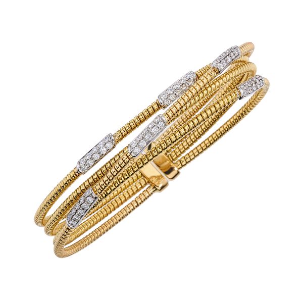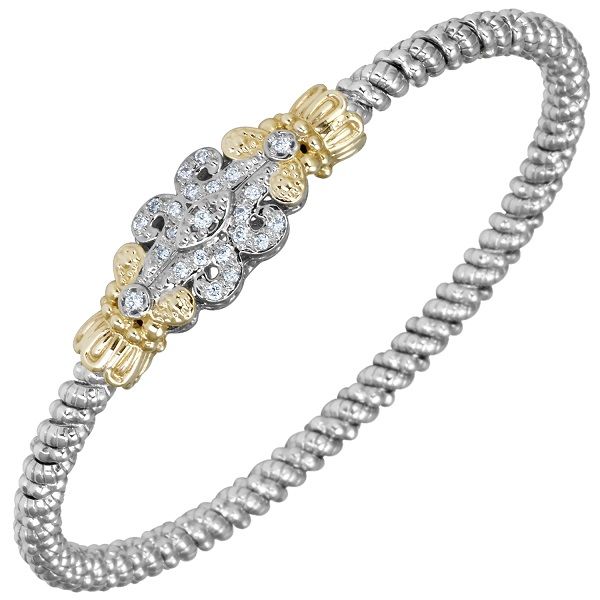 Clarity: The clarity of a diamond shows how pure the diamond is. Diamonds are formed underground using tremendous pressure, and natural differences called inclusions and exclusions happen. The diamond clarity rating takes into consideration how many of these differences happen and how significantly they impact the overall look of the diamond. Diamonds are rated on a scale from fewest inclusions to most. The highest quality diamond is called “flawless,” which means that no exclusions or inclusions are visible under 10x magnification. The lowest quality is called “included,” and those diamonds have obvious imperfections under magnification that impact the diamond brilliance. This Vahan bracelet is full of diamonds with great clarity.