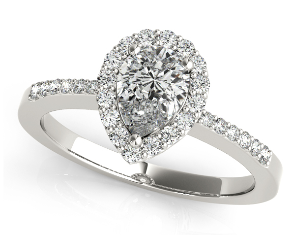 Check out this pear-shaped diamond set in a white gold engagement band. We love the elegant shape and sparkle.