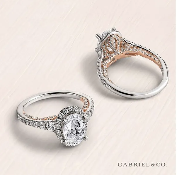 This ring from Gabriel and Co is a TOTAL showstopper! We are especially obsessed with the insanely detailed undercarriage. Shop all of Gabriel and Co’s looks here.