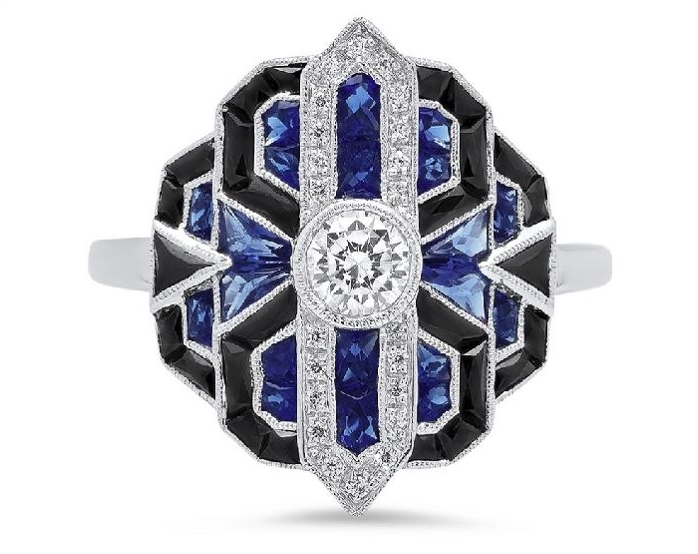 Feeling something a little less traditional? This sapphire and onyx art deco-inspired ring will do the trick. This stunning Beverley K ring gives us some serious roaring 20s vibes.