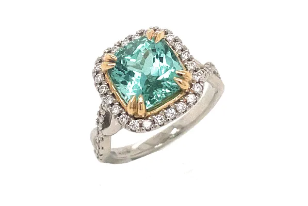 This green tourmaline ring is an absolute showstopper! The white and yellow gold set off the dramatic color of the tourmaline. If you’re looking to absolutely knock it out of the park this year, this is the ring for you.
