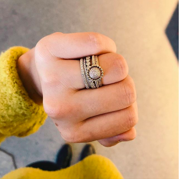 How can you pull off this celebrity look? Start by making sure your rings are similar but not matching. You might experiment with ring stacks made of similar metals or multiple thin rings. Pick something to keep your look cohesive, then get creative.