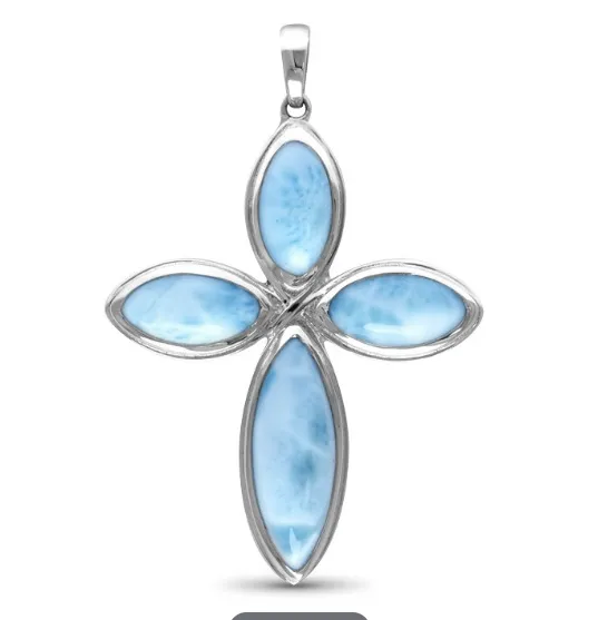 This cross necklace made with blue larimar is a great example of this color combination. Marahlago crafts with larimar and often uses silver, which makes for truly stunning jewelry.