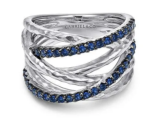 The lighter color of larimar certainly hasn’t cornered the silver market. Sapphire, one of the most famous blue-hued stones, looks absolutely amazing set in silver. This Gabriel and Co. sterling silver ring is bold and fantastic. It plays with texture so well that we’re sure we couldn’t look away if you paid us!