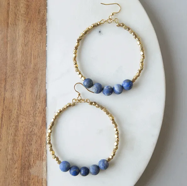 If your neckline is pretty busy already, you might want to give your ears some sparkle. We love these lapis lazuli hoop-inspired earrings for a fun twist on a traditional silhouette.