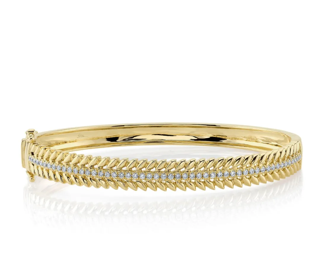 Another piece we’re loving this spring is our 14kt yellow gold hinged bangle from the Laurel Wreath collection. This bracelet makes a bold yet refined statement with its sleek silhouette and delicate leaf-inspired details. A sprinkle of sparkling diamonds adds just the right amount of shimmer without overwhelming the design. Hinged for comfort and security, this bracelet is as practical as it is beautiful. It’s perfect for stacking with other bangles—or wearing solo to let the yellow gold and diamonds do all the talking. Whether you’re headed to brunch or a night out, this bangle brings a touch of effortless glam to every outfit.