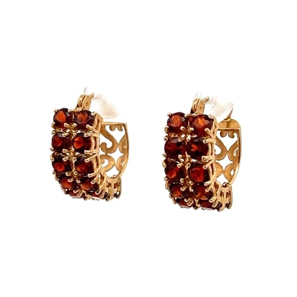 (301) 855-8770Estate 14Kt Yellow Double Row Garnet Hoop Earrings