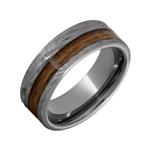 (301) 855-8770Tungsten™ Flat Band with Off-Center Bourbon Barrel Aged™ Inlay and Bark Finish