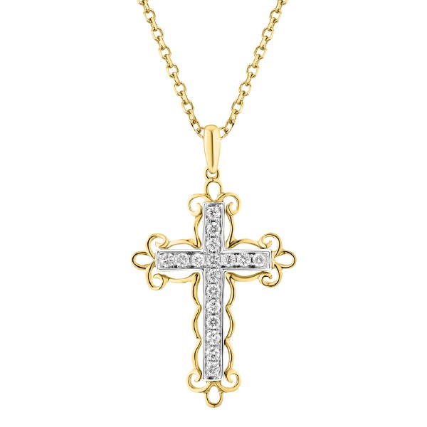 14k Yellow-White Gold Diamond Cross Pendant Dickinson Jewelers Dunkirk, MD